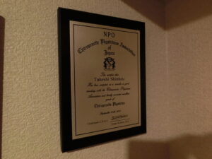 また当院はカイロプラクターのプロ集団とも言える「NPO法人:日本カイロプラクティックフィジシャンズ協会」の認定院です。